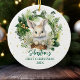Conmemorar un momento especial con este encantador conejito adorno. Con un espléndido conejito de vegetación exuberante, este adorno capta la magia de la primera Navidad de un bebé o de las primeras vacaciones de una juntos. Personalízalo con un nombre y año para crear un conservador signifikativativo que traerá alegría año tras año. Perfecto para añadir un toque dulce e inspirrado en la naturaleza a tu árbol de Navidad o como un regalo para nuevos padres o seres queridos. Celebra la temporada con este delicioso adorno de cerámica.