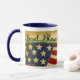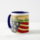 Primitiv keramisk Mugg i Old glory Välsigna dig Amerika.