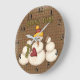 Lägg till den här primitiva snögubbe-klockan i ROLIGTEN SNÖ till vilket rum som helst i ditt hem i land. Tre viskartade snögubbar är alla på sin vinter som bäst och är alla redon att spela i snö. Fallande snö vid klocka. Bakgrunden är land. Snögubbe i centrum håller ett hjärta.