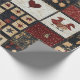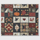 Den här inslagningen av papper har ett konstlappande estetiskt, som ordnats i ett rutnät av kvadratiska block som blandar både applikqué och pieced inslag. Appliquéd-motiven omfattar en fet orange-pumpa, en svart kråka, röda hjärtan, kycklingar och stiliserade blommigtar, medan de pieced-block visar traditionell geometrisk quilt-mönster som stjärnor, diamanter och kor. Användan av djupa , krämer och mörkar/, accentuerade med mönstrade tyger som polka dots, blommigtar och texturerade fasta ämnen, skapar ett varmt och rustiskt stil. Perfekt för jordbruksgrödor, boende i land, primitiva hantverk och säsong-ympkilter, denna utformning ger uttryck för den traditionella karaktären av "quilting" med en mysigt, handgjord känsla.