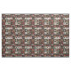 Den här väven har ett konstlappande estetiskt mönster som ordnats i ett rutnät med kvadratiska block som blandar både applicé och pieced inslag. Appliquéd-motiven omfattar en fet orange-pumpa, en svart kråka, röda hjärtan, kycklingar och stiliserade blommigtar, medan de pieced-block visar traditionell geometrisk quilt-mönster som stjärnor, diamanter och kor. Användan av djupa , krämer och mörkar/, accentuerade med mönstrade tyger som polka dots, blommigtar och texturerade fasta ämnen, skapar ett varmt och rustiskt stil. Perfekt för jordbruksgrödor, boende i land, primitiva hantverk och säsong-ympkilter, denna utformning ger uttryck för den traditionella karaktären av "quilting" med en mysigt, handgjord känsla.
