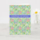 Ett nätt födelsedagkort med "grattis på födelsedagen" i polskt och ett mönster av djupt - djupblå och gula primroses för rosor, från en handpainted design av Judy Adamson.