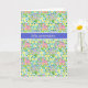 Ett nätt födelsedagkort med "grattis på födelsedagen" i portugis och ett mönster av djupt - djupblå och gula primroses för rosor, från en handpainted design av Judy Adamson.