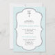 Baptism eller inbjudan till Heliga från gemenskapen som innehåller design med kronad kor och Baby blue gräns.
