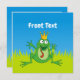 Prins groda tecknad med krona över grönt gräs under blå himmel.