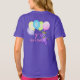 Lila prinsessans nallar klädda i underbar gult, smyckad krona och rosa, blåblommor och blommor av grönt, dans bland blommorna och hålla en samling färgstarka ballonger med ord LYCKLIG på dem. Den här 7-åriga födelsedagskjortan kommer att ge en speciell flicka leende på hennes 7:e födelsedag. Anpassa med namn för att göra extra speciellt. Ursprunglig design av Anura Design Studio.
