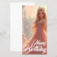 Magiskt födelsedagskort med en prinsessa i en rosa, perfekt för flickor och fläkt av sagor och elegans.