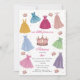 En vacker hand plockade-design med olika typer av prinsessans sagda klänningar och krona. Ett vackert tema för prinsessans födelsedagsfest är perfekt för små flickor som gillar att klä sig som prinsessa. En magisk prinsessa-födelsedag, inbjudan, visa matchande födelsedagsförmån och dekorera i den här designens samling.