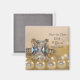 Anpassa den elegant prinsessan Diamond och Pearls Bröllop spara datum Square Magnet med namnen av briden och brudgummen och ceremonin i giftermål för att tillkännage dina kommande uptialer. I den här klassens personligt bröllp-behålla i datummagneten finns ett nära foto av en fyrkantig prinsessa klippt diamant förlovning ring och vitpärlhalsband.