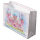 Princess presentsäck med söt vattenfärgsprinsessans slott på ett blått vattenfärgsmoln och rosa bakgrund. Den här prinsessans presentväskan kan vara personlig med text, och du kan byta färg. slottet är olåst så att du kan ändra storlek efter behov för de mindre säckstorlekarna.