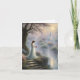 Söt prinsessa i en vit krona som håller en rosa blomma i en förtrollad slottsträdgård