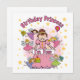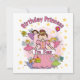 En berömvärd födelsedagspressdesign med en prinsessa i en rosa klänning med en banderoll som lyder "Jag är fyra" omgiven av små älvor med ballonger, blommor och en födelsedagskalas!