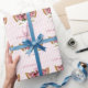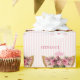 Söta flickors pappra inslagning i rosa och vitt rand, med grafik av ett sött ansikte i kattunge som är komplett med guldlash i öga och rosa krona- och rosa blommor. Anpassa namn för födelsedagar och mer.