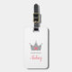 Vitbagagemärkre med ett namn för princesskrona och ditt barns i rosa calligraphy. Baksidaen presenterar en rosa, och vitmönster av princessen krönar.