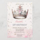 Den första födelsedagsinbjudan med prinsessan krona och konetti.
