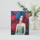 En bild av en prinsessa med blå dekorativ klänning och blå afro wig. Det här är en AI-genererad teckning med ett tema för blommigt.