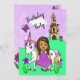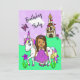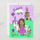 En söt lila tog inbjudan på födelsedagen. Den lilla flickan har en brun färg som representerar en latinamerikansk eller afrikansk-amerikansk flicka.