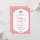 En inbjudan till rosa Princess Party med en illustration av krona och en diamant mönster. Perfekt för en flickas födelsedagsfest.