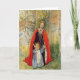 Porträtt i mor i ett "rödriggande huva" med en krona som håller händer med sin lilla flicka. Vintage vattenfärg av den svenske konstnären Carl Larsson.
