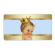 Babyblå och guld prins baby shower vattenflasketiketter med en söt liten prins som bär en guldkrona på en vacker blå och guldbakgrund. Du kan lägga till text för att anpassa dessa söta prins vattenflasketiketter för babypojkar, och du kan ändra bakgrundsfärgen till vad du föredrar. Inte för användning i isbaljor - dessa är inte vattentäta.