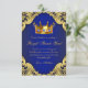 Prins födelsedags tackkort med en kunglig juvelkrona på en kunglig blå och guld virvlande bakgrund. Detta vackra, platta tackkort för prins födelsedagsfirande i kunglig blå och guld är lätt att anpassa genom att lägga till ditt meddelande. Detta är en tryckt design utan riktiga juveler, glitter etc.