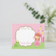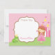 Prinsess tack-kort med rosa prickig bakgrund, med grodprinsen, slott & prinsessa i brunett / rött hår.