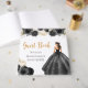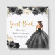 Denna quinceanera-gästbok har en vacker prinsessa i en svart balklänning med blomsterarrangemang. Det är perfekt för en quinceanera-födelsedagsfest.