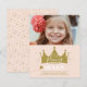 En fantasifull söt flickig prinsessa födelsedagsfest inbjudan med en guldkrona med tindrande stjärnor, randig trollstav och redigerbar text. Markera din lilla prinsessas namn inuti den magiska kronan om du föredrar med det rörliga trollstavselementet som pekar på åldern. Kommer med koordinerande mönster på baksidan. Klicka på redigera för att anpassa bild och text.