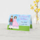 Cute Brunette Princess och Prince Birthday Greeting Card. Den bruna prinsessan kysser prinsen. Han förvandlas till en enhörning och de lever lyckligt efter.