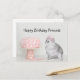 Ung skuggad silver persisk kattunge katt bär sin rosa prinsess krona och ser på sin vackra rosa födelsedagstårta katt älskande prinsessa födelsedag vykort