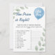 Pris är Höger Shower-spel | Ballon Eucalyptus Greenery Pojke Game Cards Den Prisa är Höger Shower Game Balloon Eucalyptus! De här engagerande spelkorten har en frisk och glad blå ballonger, som skapar en härlig bakgrund för denna populära verksamhet. Det är det perfekt sättet att lägga till lite vänskaplig konkurrens och skratt när gästerna gissar priserna på vanliga baby-artiklar! Detta "Prisa är Höger"-babyduschspel är idealiskt för värdar som tittar för en interaktiv och humoristisk aktivitet som gäster i alla åldrar kommer att åtnjuta. Den milda eukalypturen och den blå ballongen gör den till en mångsidig plats för olika duschteman i pojke, från modern botanisk till rustisk elegant. Gästerna kommer att göra en blastberäkning av kostnaderna för baby, vilket kommer att leda till överraskande avslöjanden och mycket roligt. Du kan enkelt anpassa de här gröna spelkorten i pojke med namn, duschdatum och en lista över baby-artiklar för gäster till prisa. Du kan anpassa typsnitt och textplaceringen så att den passar perfekt in i din unika firande-vision. De här spelkorten är designade att vara ett vackert och funktionellt komplement till dina babyduschaktiviteter, vilket ger tydliga utrymmen för gästerna att skriva sina gissningar. prist är höger-, ballongeukalyptus- spel, grönt babydusch-spel, eucalyptus pojke-spel, prist spel i blå baby, babydusch, prist personlig, eukalyptus grey roligt, pojkdusch. baby, prist objekt