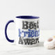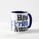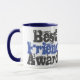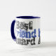 Gåva till en vän. Prisgåva till en bästa vän. Pris för bästa vän är det feta grafiska budskapet på denna blå, grå och vita mugg.