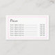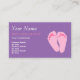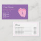 Visitkortar för reflexologists. Designen presenterar en para av rosa fot. Baksidaen av kortet har utrymme för prissätter av upp till sex objekt som ska skrivs in.