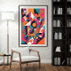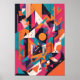 En kraftig explosion av djärva geometriska former och levande färg. I abstrakt leker biet med lagrar, linjer och symmetri för att skapa en dynamisk känsla av rytm och rörelse. Ljusa nyanser av magenta, teal, orange och svart kollid i ett digitalt estetiskt stadskärl, vilket framhäver modernt och innovationens visuella språk.