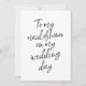 Ett modernt "Till min maid of honor på min bröllopsdag"-kort. Om du klickar på knappen "Anpassa" kan du lägga till en bakgrundsbild för anpassningsbarna färg.
