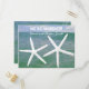 Prisvärda efterbröllopsinbjudningar med postkort. Två sjöstjärnor representerar det lyckliga paret mot en bakgrund av havsvatten, med vit text att anpassa efter dina behov