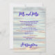 Tillkännage ett äktenskap på vatten-temat papper, med herr och fru överst och efternamn längst ner. Anpassa den centrala textmallen med formulering för en mottagning för att fira de nygifta. Sjö eller lugnt havsvattenpapper med mörklila text.