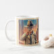 Scenen visar en detektiv som håller en förstorare med staden som bakgrund. Han bär den klassiska hatten och regnrock och betalar noga vad han gör. Det här anpassadet kaffe mugg kommer att göra din dag.