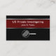 Privata utredarevisitkortar med den moderna designen, som inkluderar ett förstoringsglas, och identifierar med fingeravtryck. Skräddarsy bakgrundsfärgen och personifiera texten för att passa din affär. En smart design för två sida, som fungerar väl för visitkortteman, förband till tillsatta lagar, privat detektiv- arbete eller säkerhet.