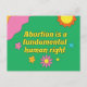 Abortion är en grundläggande mänsklig höger som är skriven i ett typsnitt av gulten i funky hippie stil för en feminist som projicerar sitt val. Visa upp din roligt med det här söta vykortet med söt blommor samtidigt som du också står upp för kvinnors höger och för rörelsen för valfrihet.