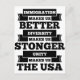 Muren och reseförbudet för invandring strider mot de mänskliga högerna och mot de värderingar som byggt USA. Denna utformning bidrar till att ge uttryck för en stark invandringsvänlighet. Invandringen gör oss starkare, mångfalden gör oss bättre, enigheten gör oss till USA.