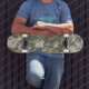 Skateboarddäck med det digitala camotrycket på det.