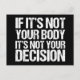 Stark protektionism: Om det inte är din kropp är det inte ditt beslut. En trevlig feministisk förespråkare för vykort som stöder kvinnors tillgång till bra hälsovård. Det är min kropp och mitt val, stödja en kvinnas höger att välja. Ingen tycker om abort, men alla förtjänar valet.
