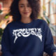 Denna sweatshirt har ordet Problem på sig i stora bokstäver i vitt.