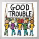 Bra Trouble-protestdesign visar att en grupp människor marscherar under banderollen "Bra Trouble". Att främja rättvisa, särskilt i förhållande till civila höger.