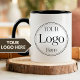 Showcase your brand with this sleek and modern two-tone mug, featuring a clean white exterior that contrasts sharply with the bold black interior and handle. This custom logo coffee mug is the perfect promotional item for corporate gifts, company swag, or everyday office use. Simply upload your business logo to the placeholder to create your own unique branded merchandise.