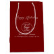 Add a festive finishing touch to your holiday packaging with these red Happy Holidays Gift Bag, perfect for client gifts, or seasonal promotions. Use the Personalize option before purchase to add your company logo, Christmas greeting, business name, and address—creating cheerful, branded gift bag that leave a lasting impression during the holiday season.