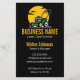 Advertise your lawn care business with this dynamic and professional flyer. The design prominently features a lively green lawn mower illustration under a bright yellow sun, set against a sophisticated black background, making your services stand out. It's designed to clearly display your business name, services offered, owner information, and all necessary contact details, ensuring potential clients can easily reach you. This flyer is an excellent tool for anyone in the landscaping or lawn maintenance industry seeking a polished and effective way to promote their services and connect with customers.