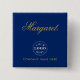 This professional navy button showcases a clean design featuring a personalized name and company information. Ideal for conferences, offices, networking events, and corporate branding, it adds a polished touch to any outfit. Customizable text ensures clarity and recognition while maintaining a sleek, professional appearance suitable for business settings and team identification.