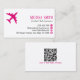 Professional QR Code Pink Plane Flight Instructor Visitkort